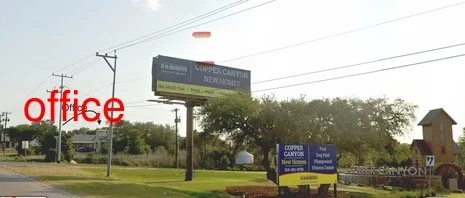 210-500-2278View heading north on 281. The entrance is just past the Copper Canyon neighborhood entrance.Office is next to the lawn mowers/tractors through the door on the left.